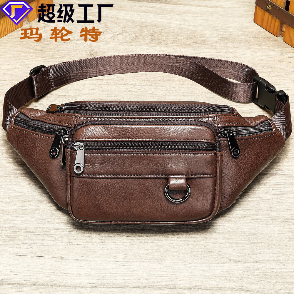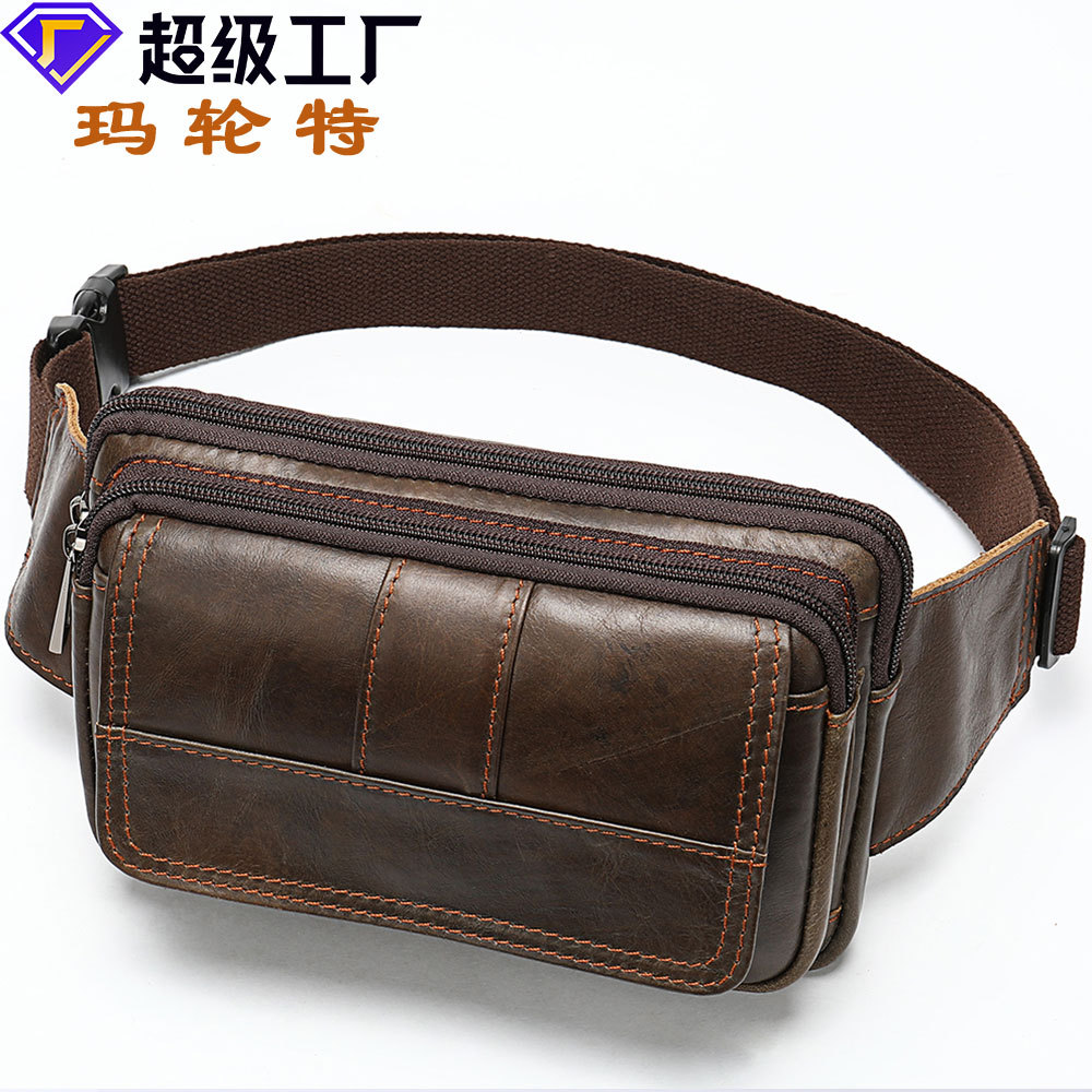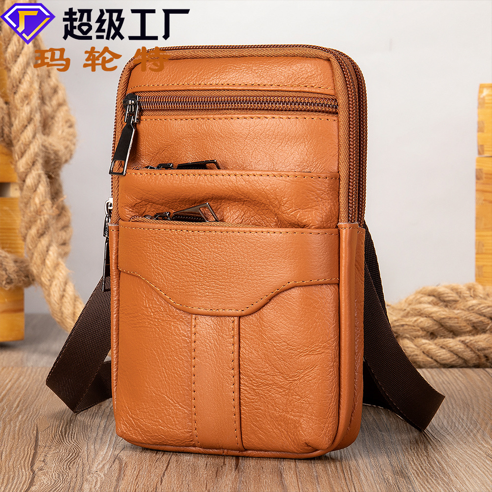 クロスボーダー本革男性ウエストバッグ携帯電話バッグ高級感トップ層牛革胸バッグ多機能スポーツシングルショルダーバッグ
