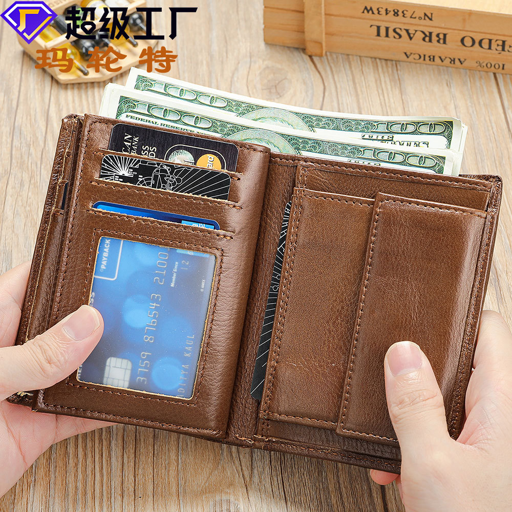 マーレットの新しい手作り牛革財布男性本革防犯ブラシ財布高級感大容量対外貿易財布