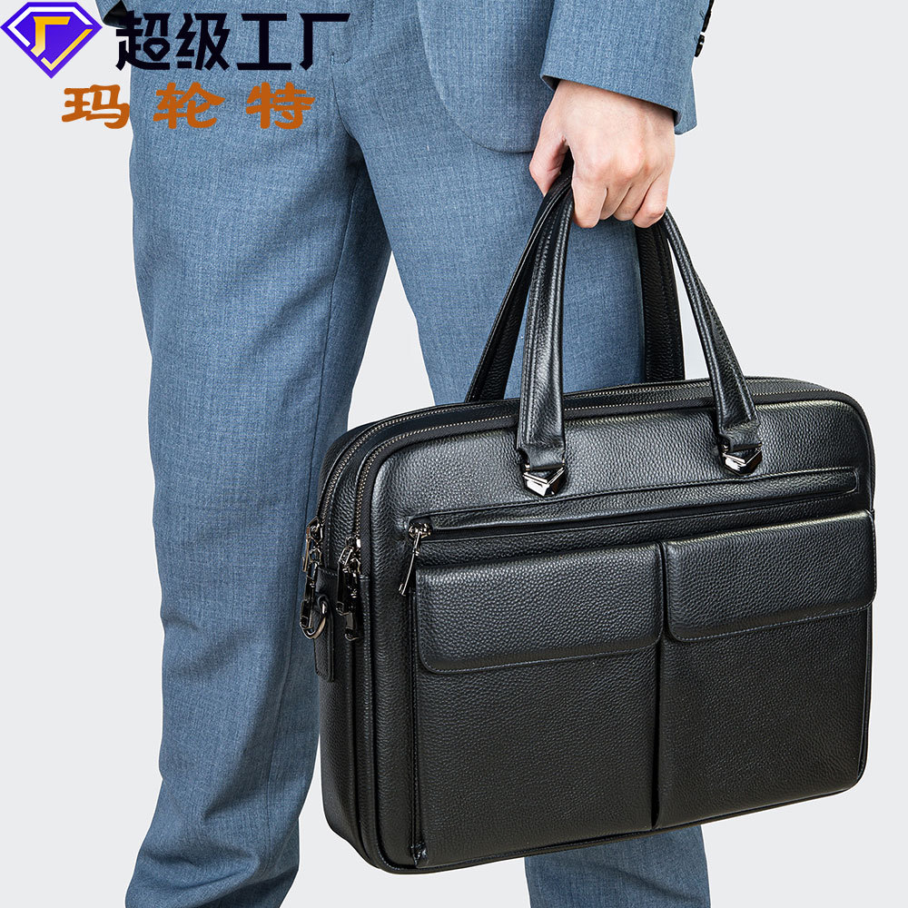 マーレット新品メンズブリーフカジュアルレトロ本革ハンドバッグ大容量ビジネスラップトップバッグ男