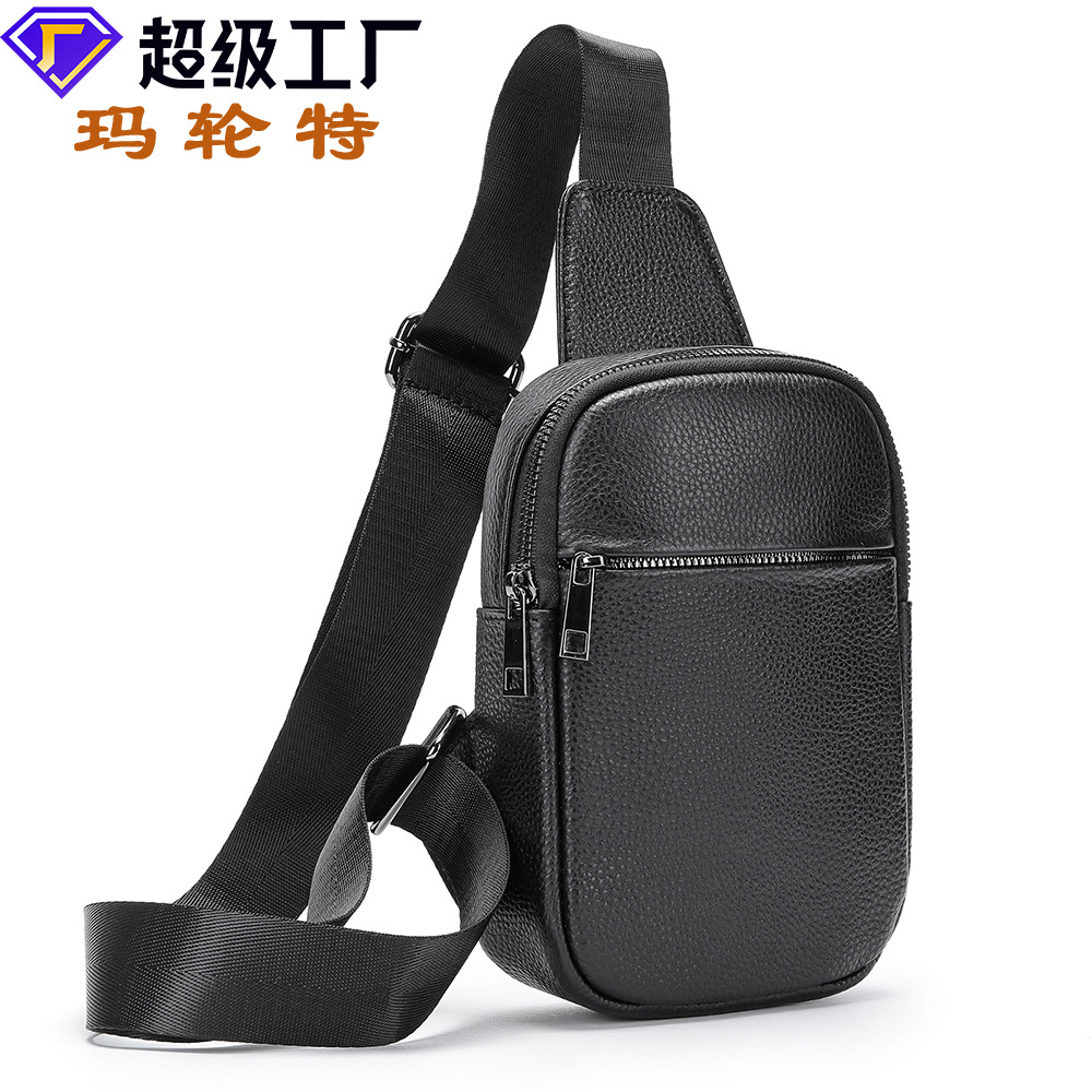 国境を越えた真皮男性の腰包頭層牛革屋外シングル肩斜め掛け胸包男性復古真皮男性小包