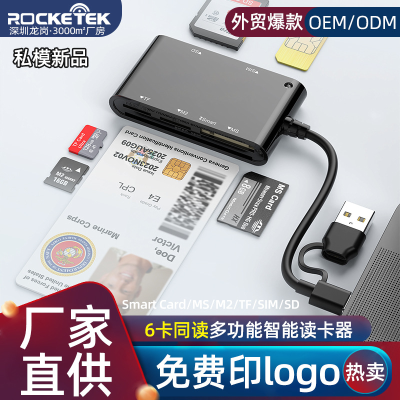 6イン1スマートカードリーダーSmart/MS/M2/TF/SIM/SD idカード社会保険カードリーダー