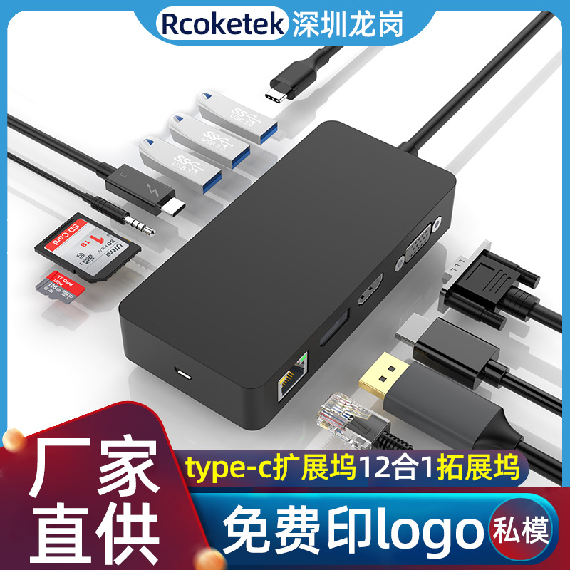 12 in 1type CギガビットネットポートPD急速充電100w帯3.5mm音麦USB3.0拡張ハブHUB
