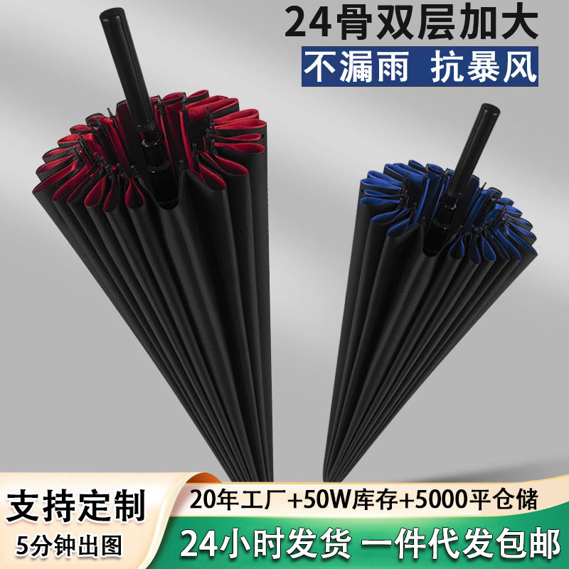 24本骨傘、大雨専用自動傘、丈夫で厚みのある長柄ストレート傘、3人用耐風大型ビジネス傘