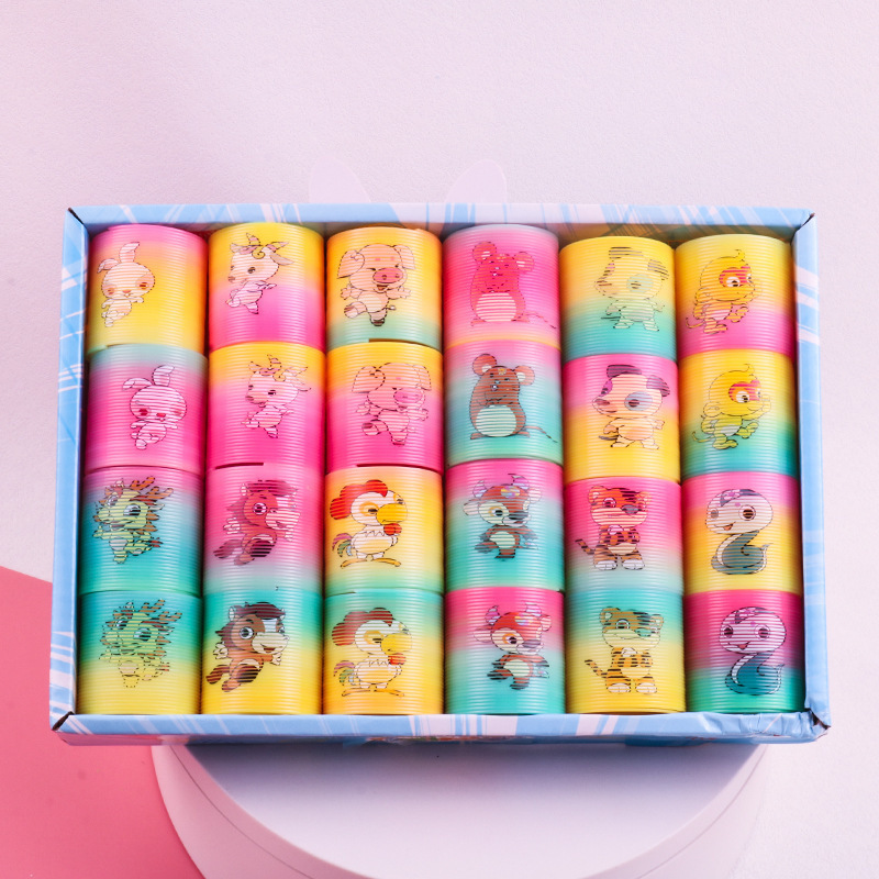 弾性レインボーサークル卸売子供用プラスチックスプリングおもちゃスマイリーフェイススタッキングサークル幼稚園小さなセット