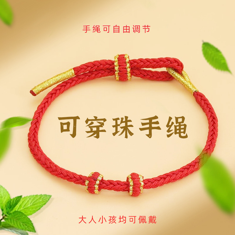 手織り8連ハーフフィニッシュハンドロープ、ビーズ付きの赤いロープジュエリー、編み目のないカップルブレスレット、男女兼用