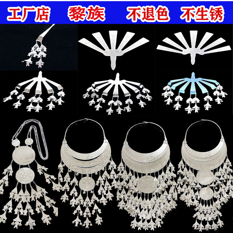 少数民族の衣装海南島レ族扇子頭飾りミャオ族首輪郷学校ダンス衣装胸アクセサリー女の子