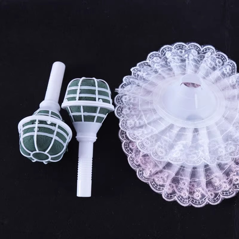 花嫁の結婚式のハンドブーケホルダー二層フラワーレース泥フラワーホルダー結婚式用品花屋用花の包装材料