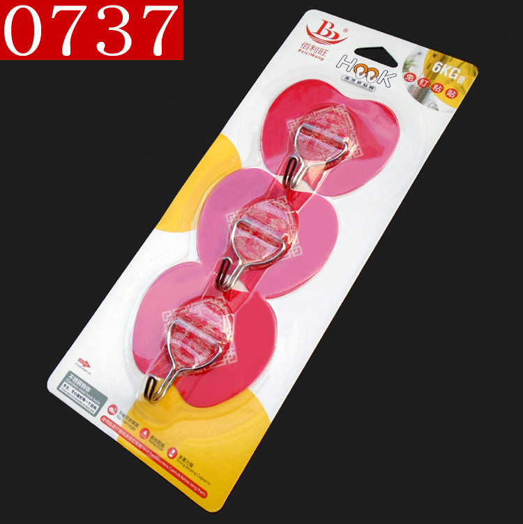 佰利旺0737無釘粘着フックお祝いジョー移転結婚赤い壁フック金属粘着フック3個セット