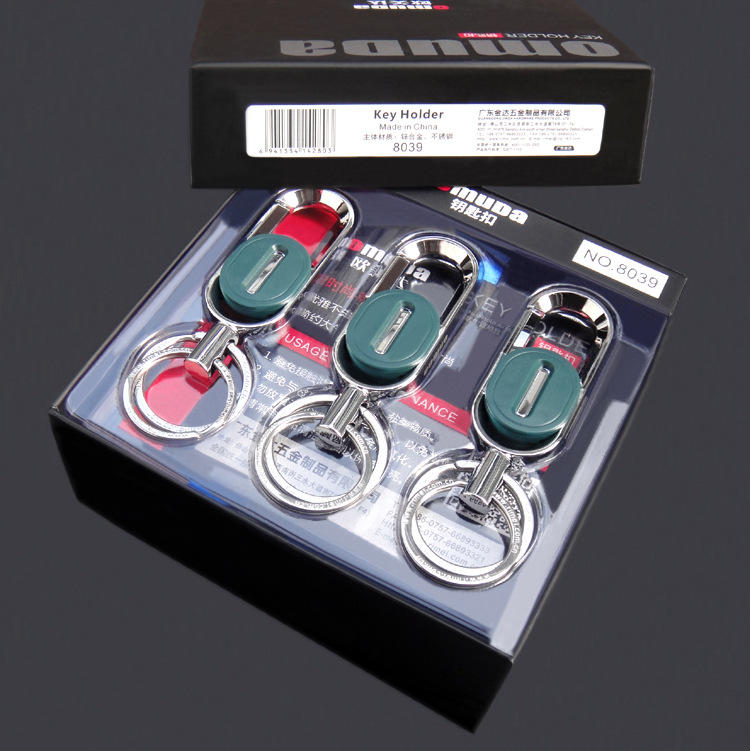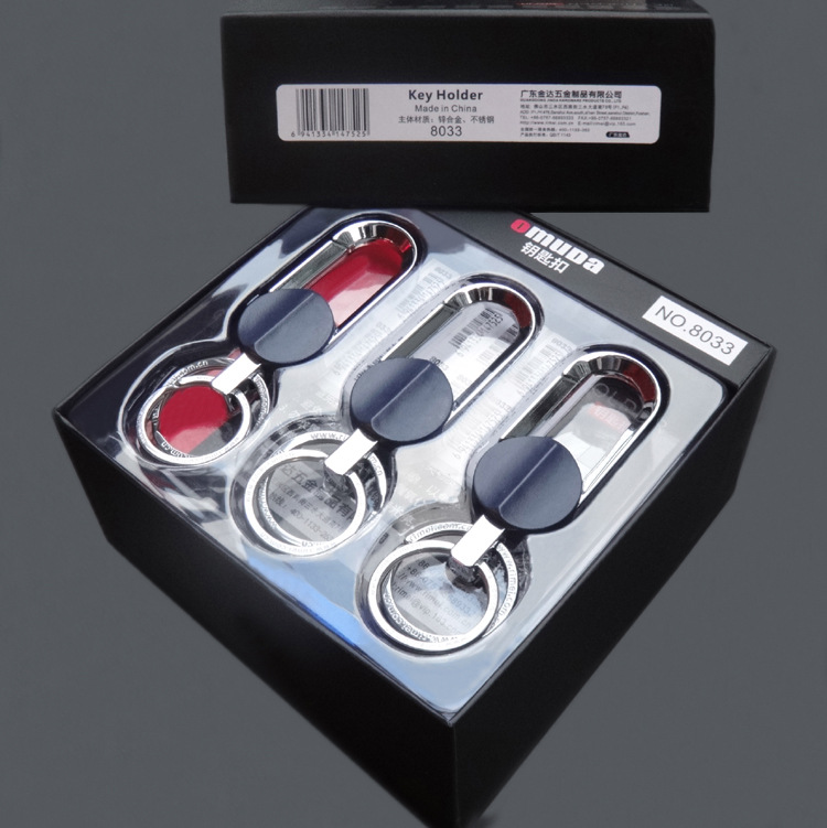 オメダA8026箱入りキーホルダー亜鉛合金ロック自動車キーストラップ吸引カード包装