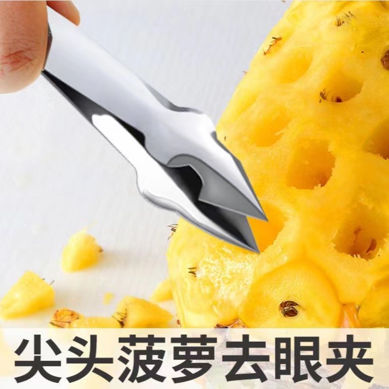 ステンレスのパイナップルは目に行ってパイナップルを挟んで目をほじくります。
