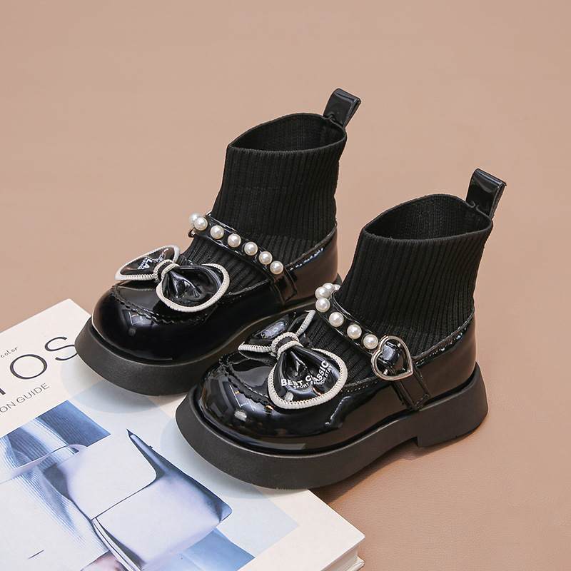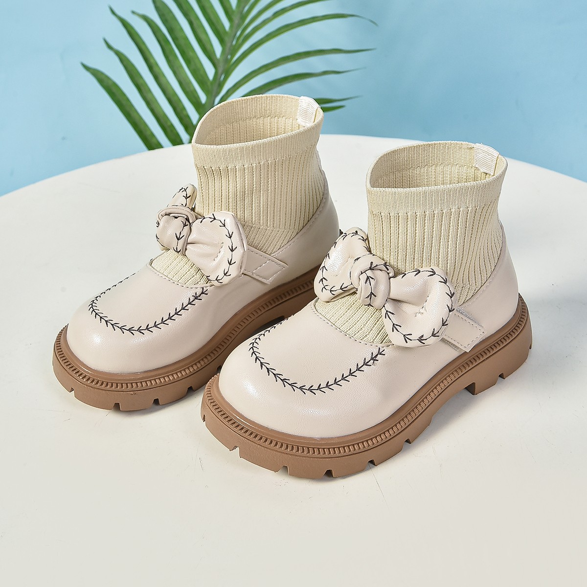 女の子プリンセスソックスブーツ2025秋冬新作子供用マーティンショートブーツ中型および大型子供用レザーブーツリボンニットシングルブーツ