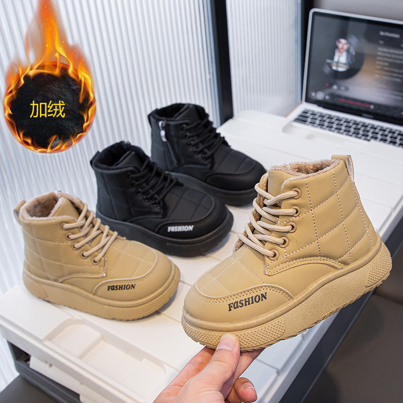 子供用スノーブーツ、女の子用裏起毛厚手暖かいショートブーツ、冬の新作男の子用コットンブーツ、中高生用迷彩ブーツ