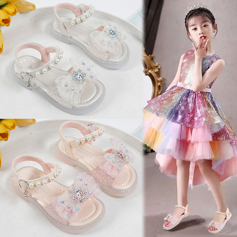 女の子用サンダル エルサ クリスタルプリンセスシューズ 2025年夏新作 子供靴 ソフトソール 滑り止め ベビーシューズ