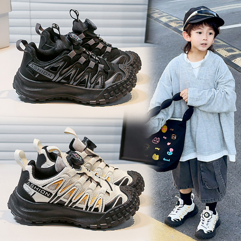 子供のスポーツシューズ 2025 春と夏の新しいメッシュ通気性お父さん靴回転バックル女の子ソフトソールカジュアルシューズ