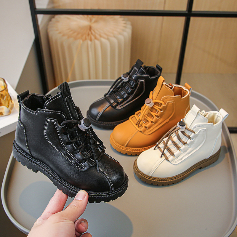 2024 春と秋の新ボーイズ多用途子供マーティンブーツ小中型子供女の子ノンスリップソフトソールブラックレザーショートブーツ