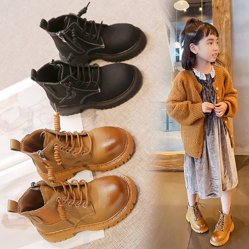 子供用マーティンブーツ2025秋冬新作、裏起毛で暖かい男の子用ファッションブーツ、中高学年女子用ショートブーツ