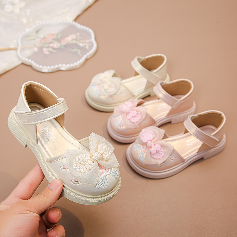 2025年夏新作 女の子用サンダル 刺繍入り 中国風 子供用プリンセスシューズ 女の子用革靴 中高学年向け おしゃれなシングルシューズ