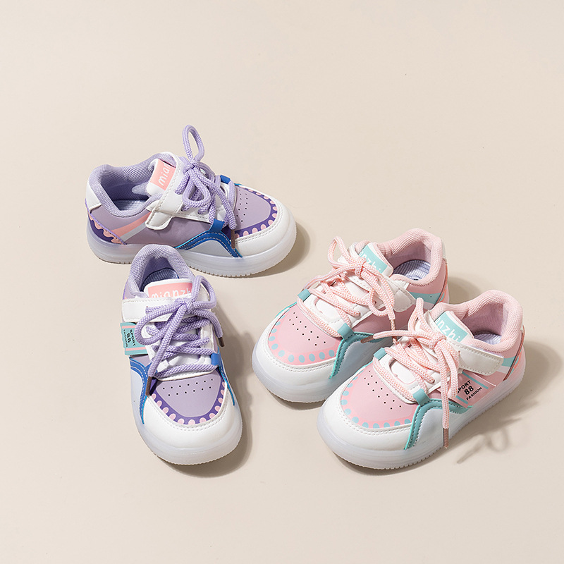 2024春の新型女の赤ちゃんのファッションの明かりの板の靴の韓国版の幼児の柔らかい底の運動靴の子供の靴の卸売り