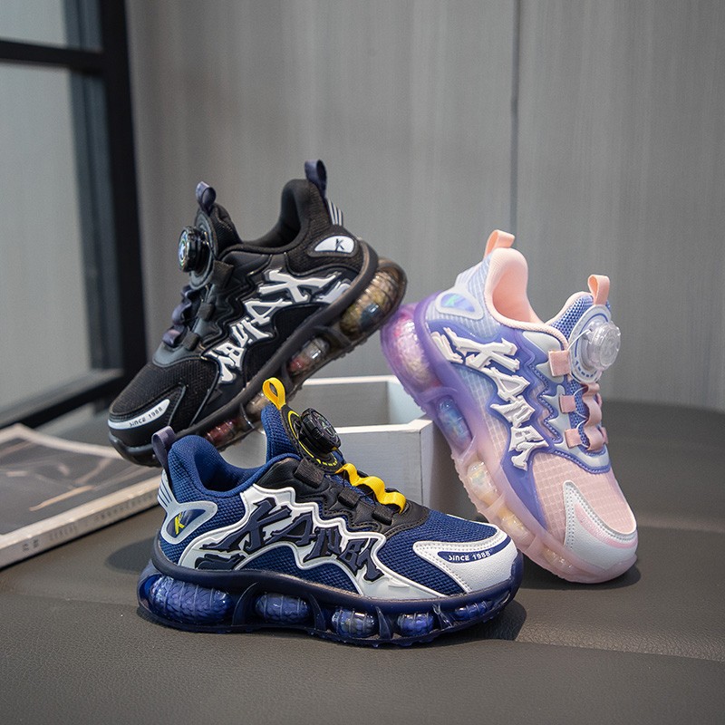 子供靴の女の子の春秋の金の2024新型の子供の運動靴の回転ボタンの男の子のお父さんの靴のファッションのつづり
