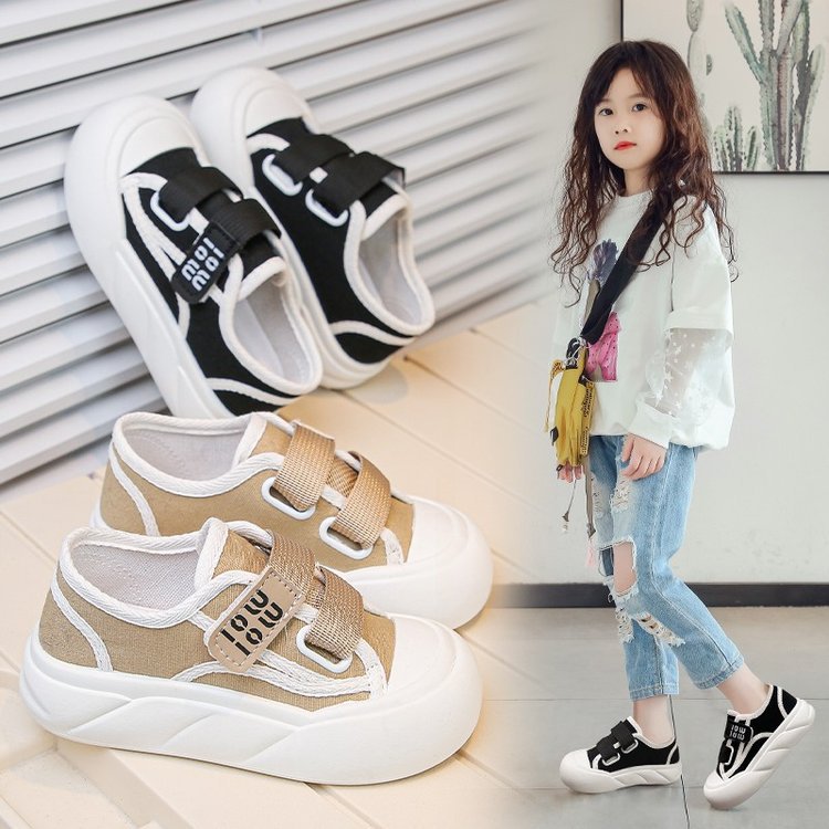 女の子の靴2024夏の新しい子供のキャンバスの靴の女の子のレジャーの通気性の運動の板の靴の中の大きい子供の布の靴