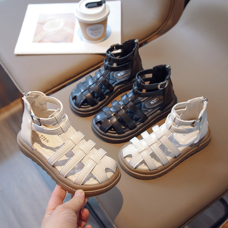 2023年子供夏サンダルレトロ衝突防止包頭ローマサンダル通気性ソフト底プリンセスシューズ子供サンダル