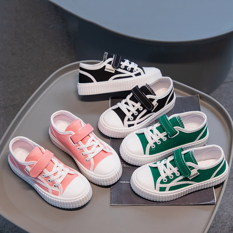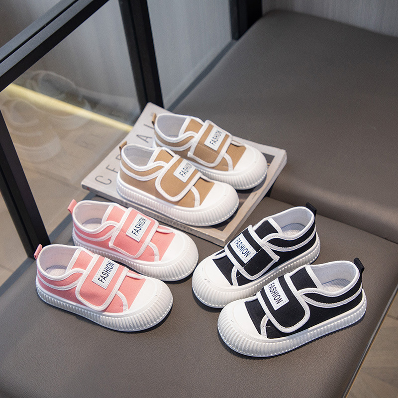 子供靴貿易2025子供用キャンバスシューズおしゃれ学生用白靴男女兼用マジックテープスニーカー四季通用