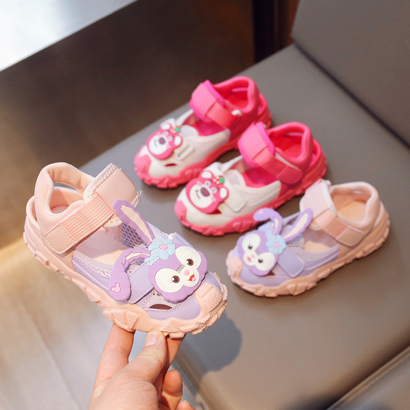 子供用スポーツサンダル 2025年夏新作 女の子用サンダル 漫画風つま先カバー付きサンダル 可愛いウサギ柄ビーチサンダル