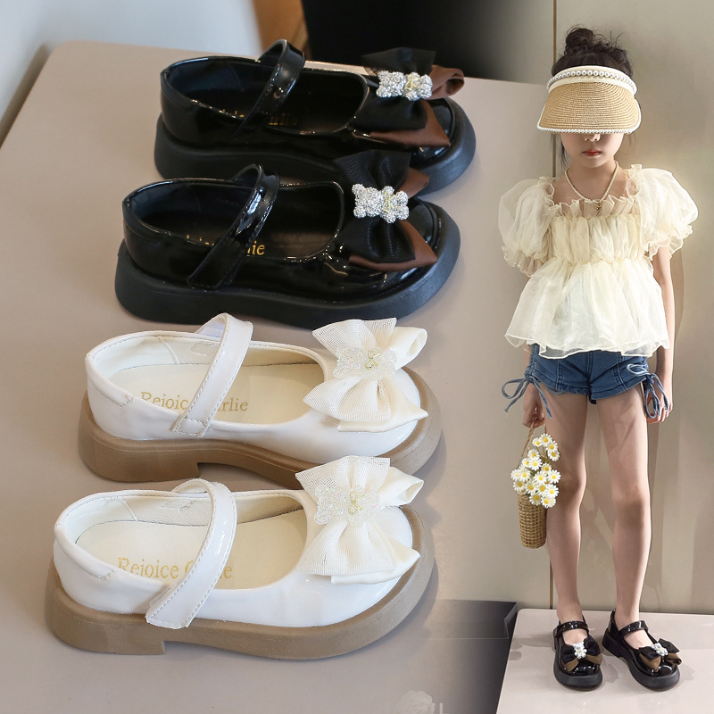 女の子用革靴 2025年春秋新作 おしゃれなリボン付き 女の子用プリンセスシューズ 小学生用 ソフトソール シングルシューズ