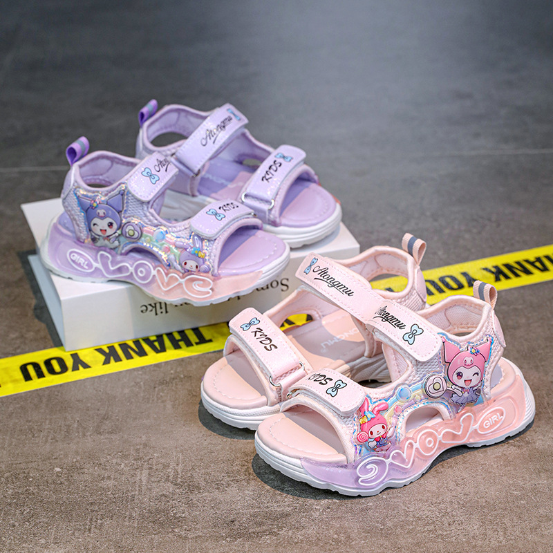 2025夏の新しい女の子の美楽ティ王女サンダル子供のクロミマジックは光る学生のビーチシューズを貼ります。