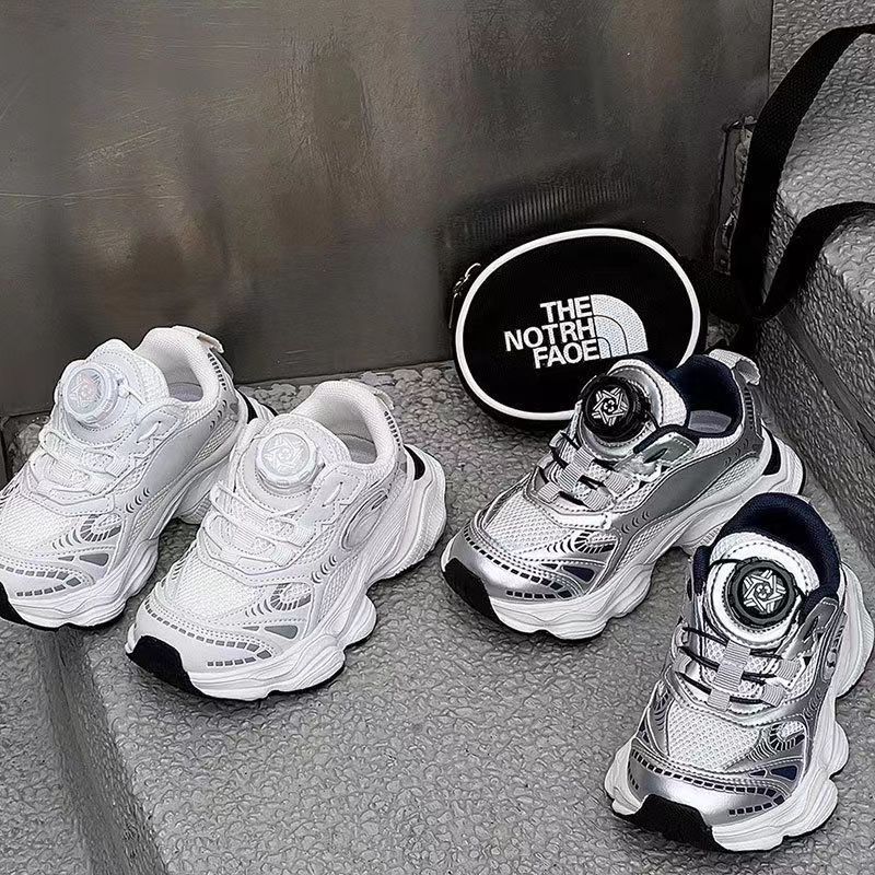 2025年秋新作 韓国風子供用スポーツシューズ 男の子用アウトドア登山靴 回転バックル付き 女の子用通気性ランニングシューズ