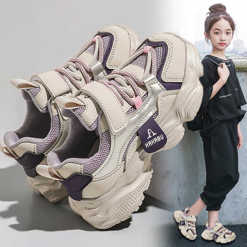 ガールズファッションスニーカー 2025 春夏新作子供用軽量スニーカー中型および大型子供用女の子パパシューズ