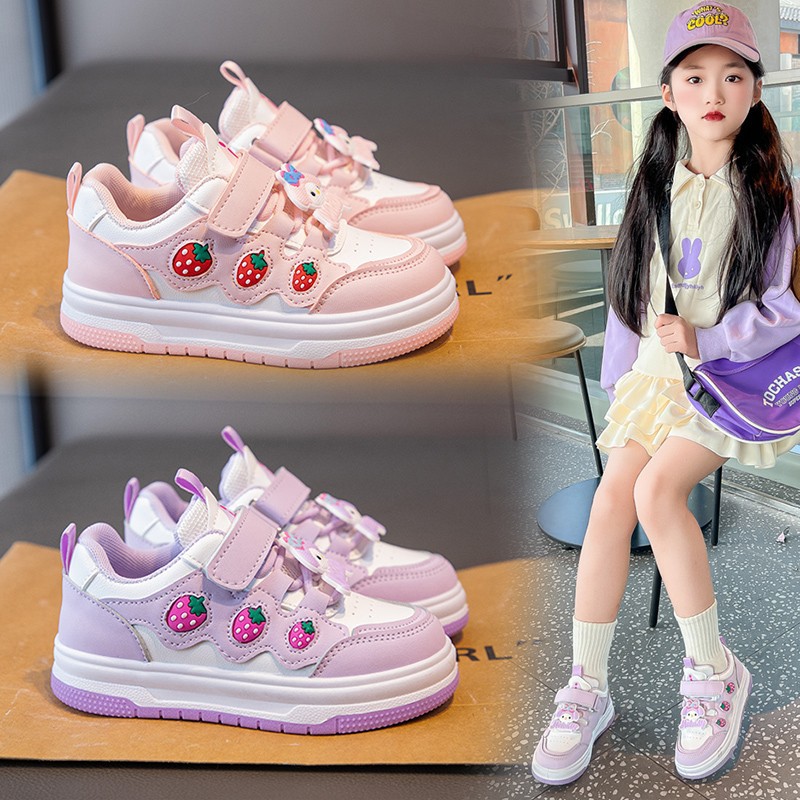 女の子の2025年秋の新作スポーツシューズ、子供用スニーカー、漫画プリンセスランニングシューズ、防水性と滑り止め性のある女の子用シューズ