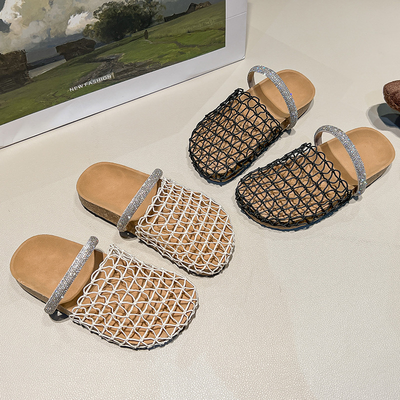 2025 新しい夏の女の子包頭メッシュスリッパヨーロッパとアメリカンスタイルのフラットソール小さな女の子多用途ビーチシューズスリッポン