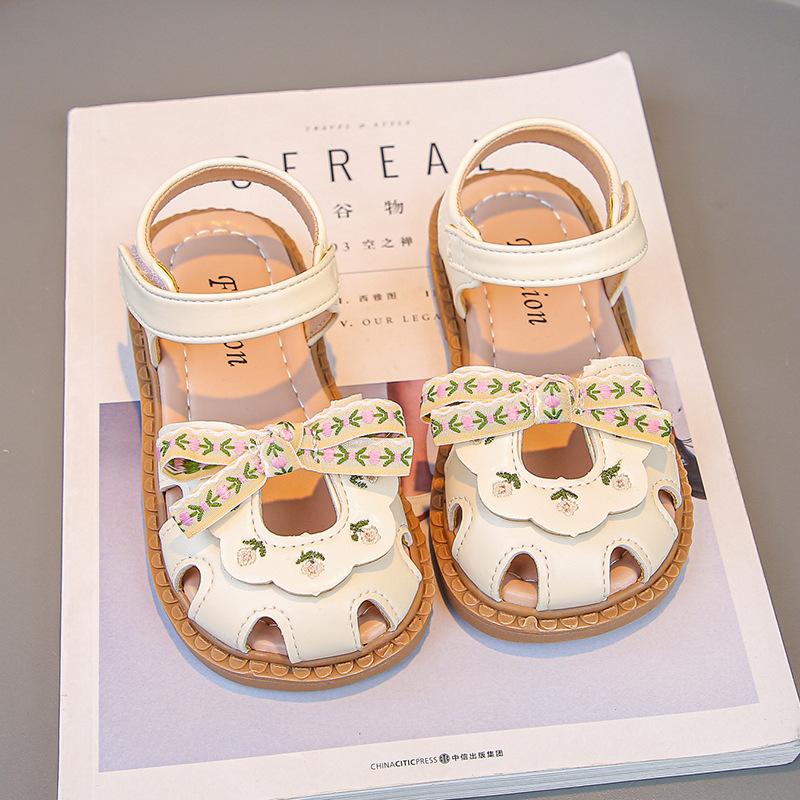 女の子の靴の子供のお姫様サンダル2024夏の新しい夏の子供の赤ちゃんの女の子の包頭ビーチの柔らかい底