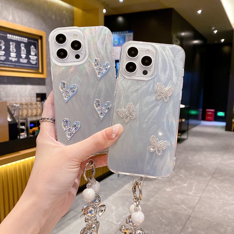 Ins立体愛羽紗殻13はアップル16pro携帯電話ケースにブレスレット付きiPhone15保護カバーpcを適用している