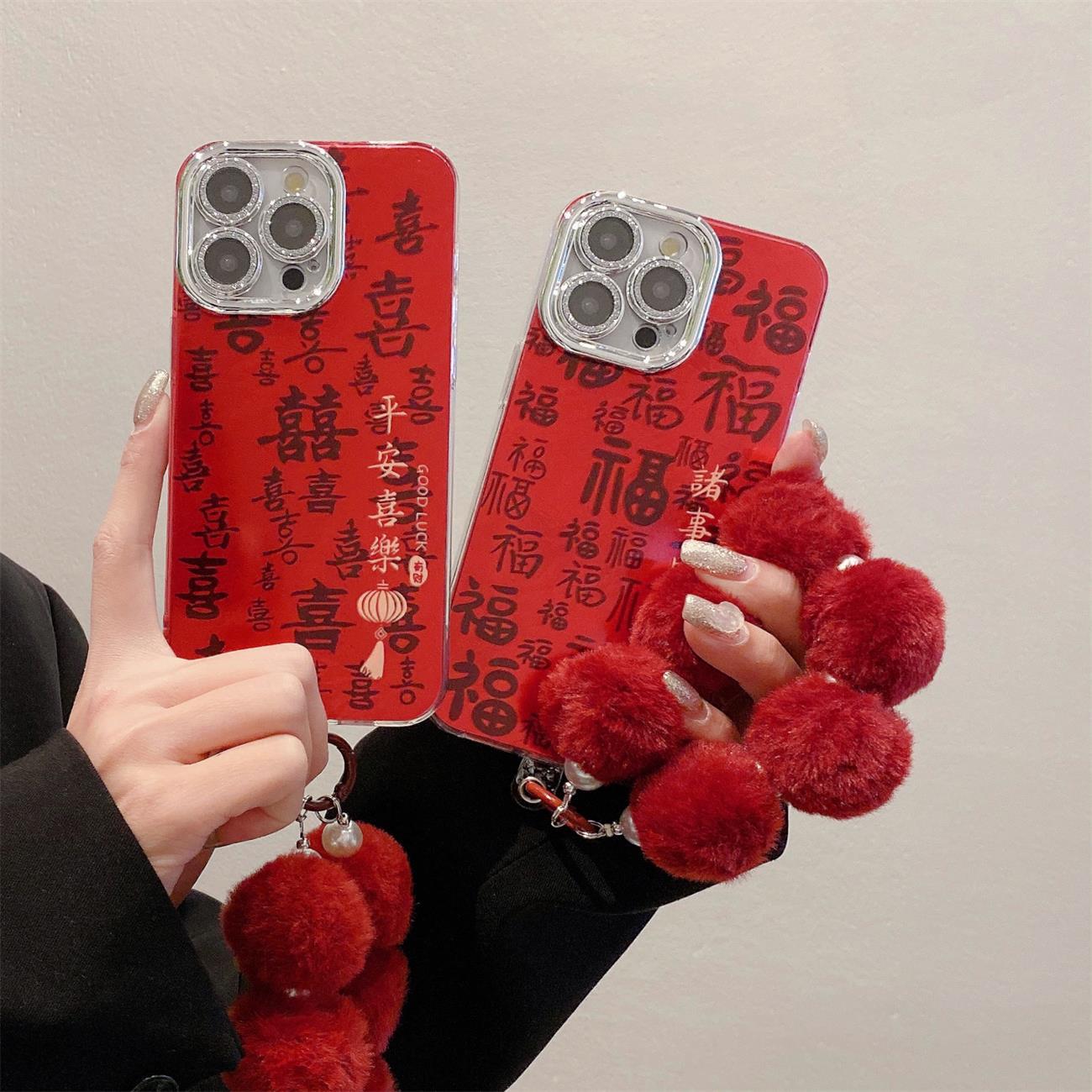 Ins風渦大孔適用16proアップル11携帯ケースチェーン付きiphone15新年保護カバー14