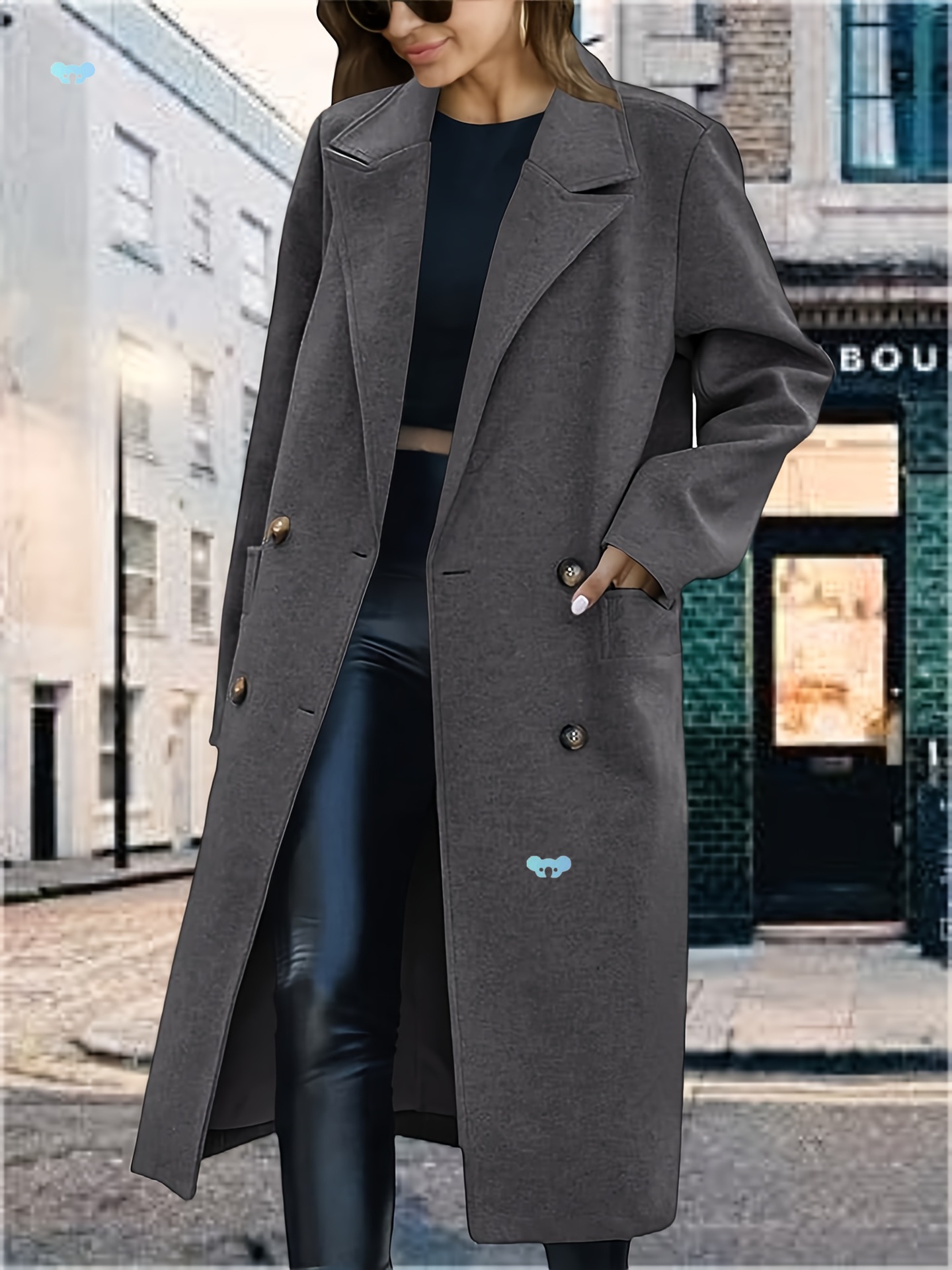 レディース エレガント ロング トレンチ コート ダブルブレスト ラペル ライト