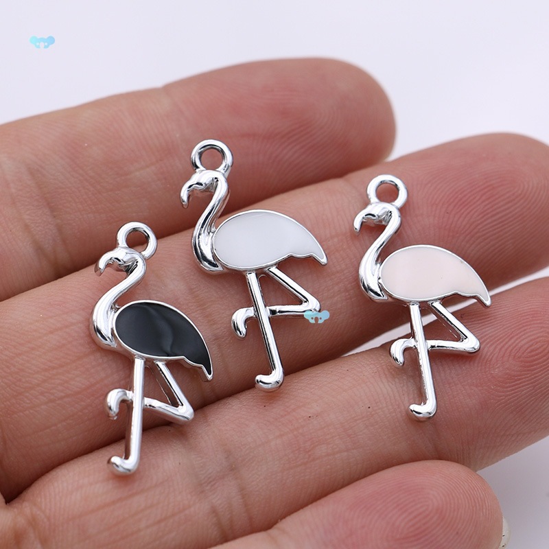 10 個シルバーメッキエナメルピンクフラミンゴチャームペンダント用