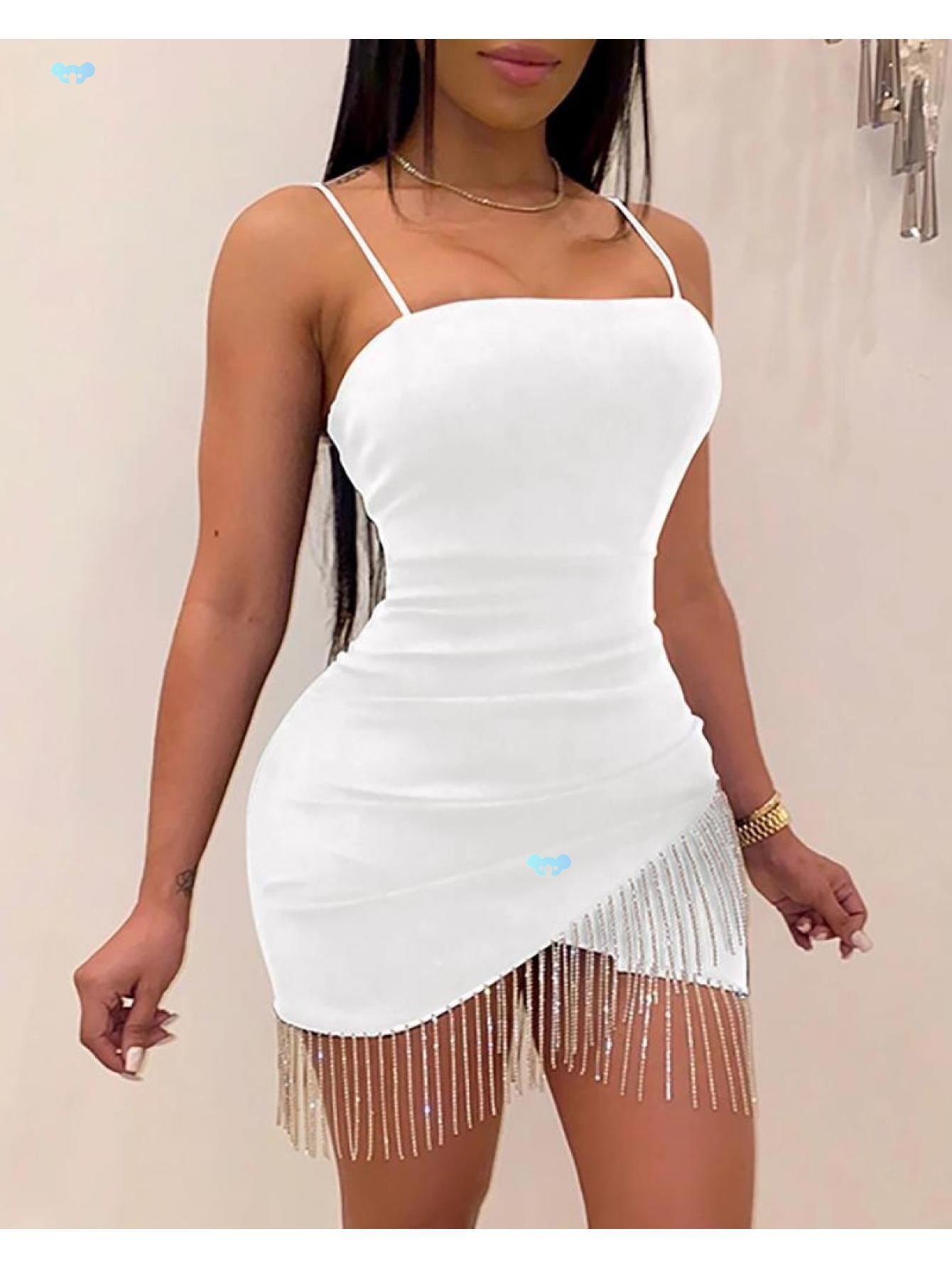 セクシーなブラック Y2K スパゲッティ ストラップ ドレス ラインストーン付きクロスボーダー