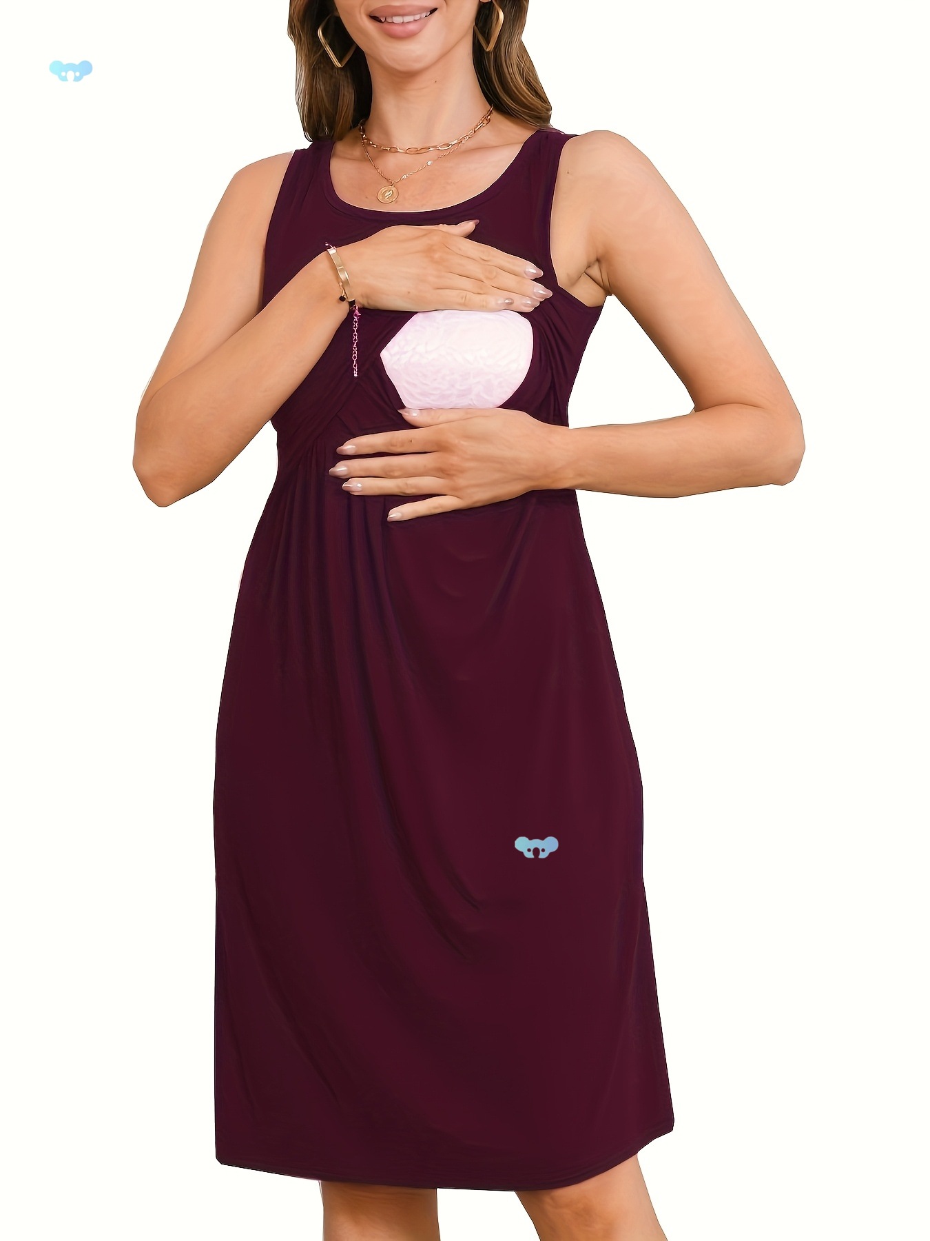 ソフトストレッチマタニティナーシングドレス袖膝クロスボーダー