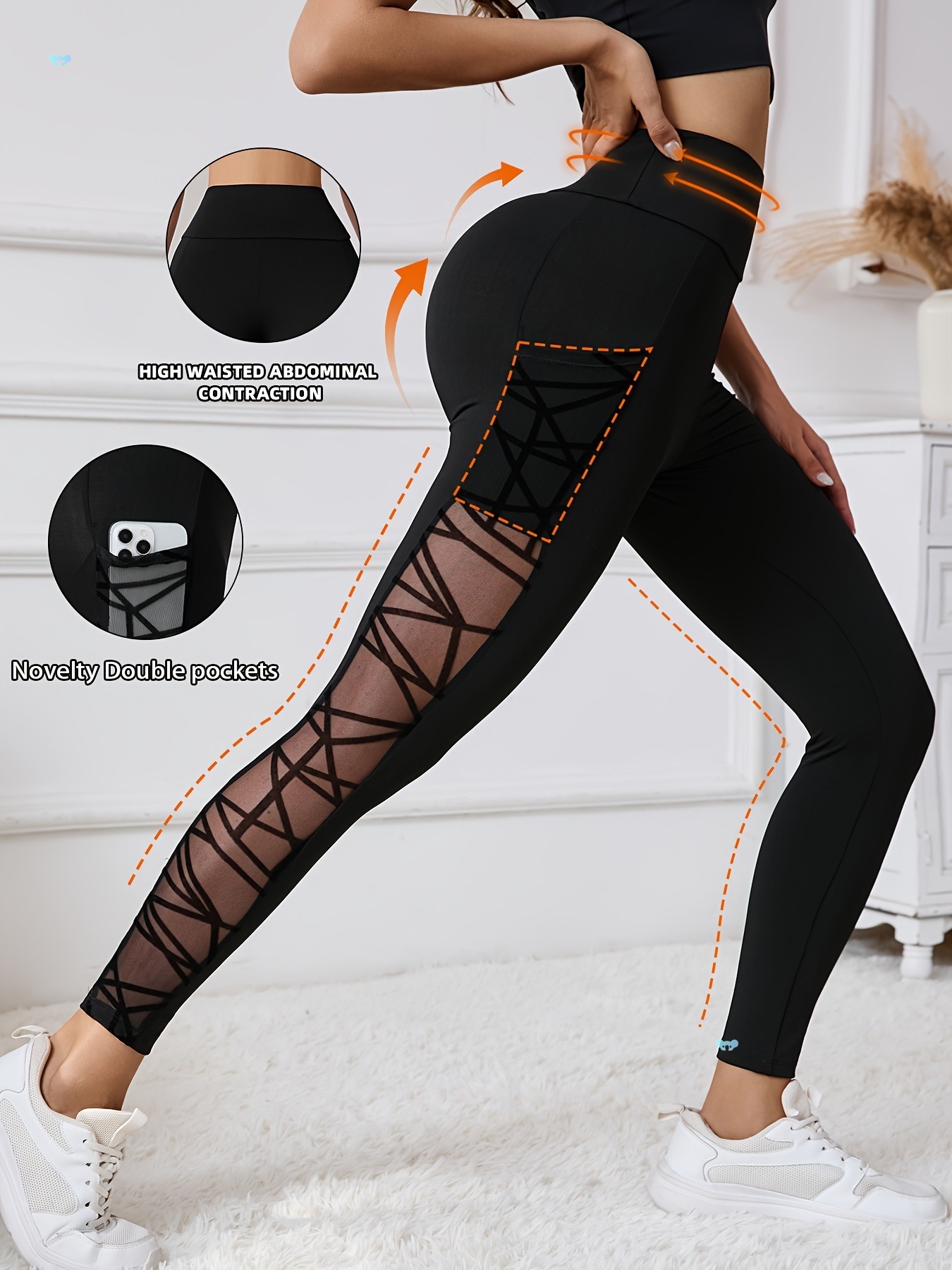 女性用ハイウエストヨガレギンスポケット付きソフトストレッチ