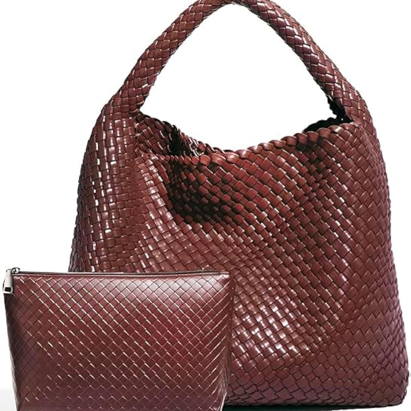 Amazon レザー手織り大容量ハンドバッグ多用途 PU レディース トートバッグ 脇の下クロスボディバッグ