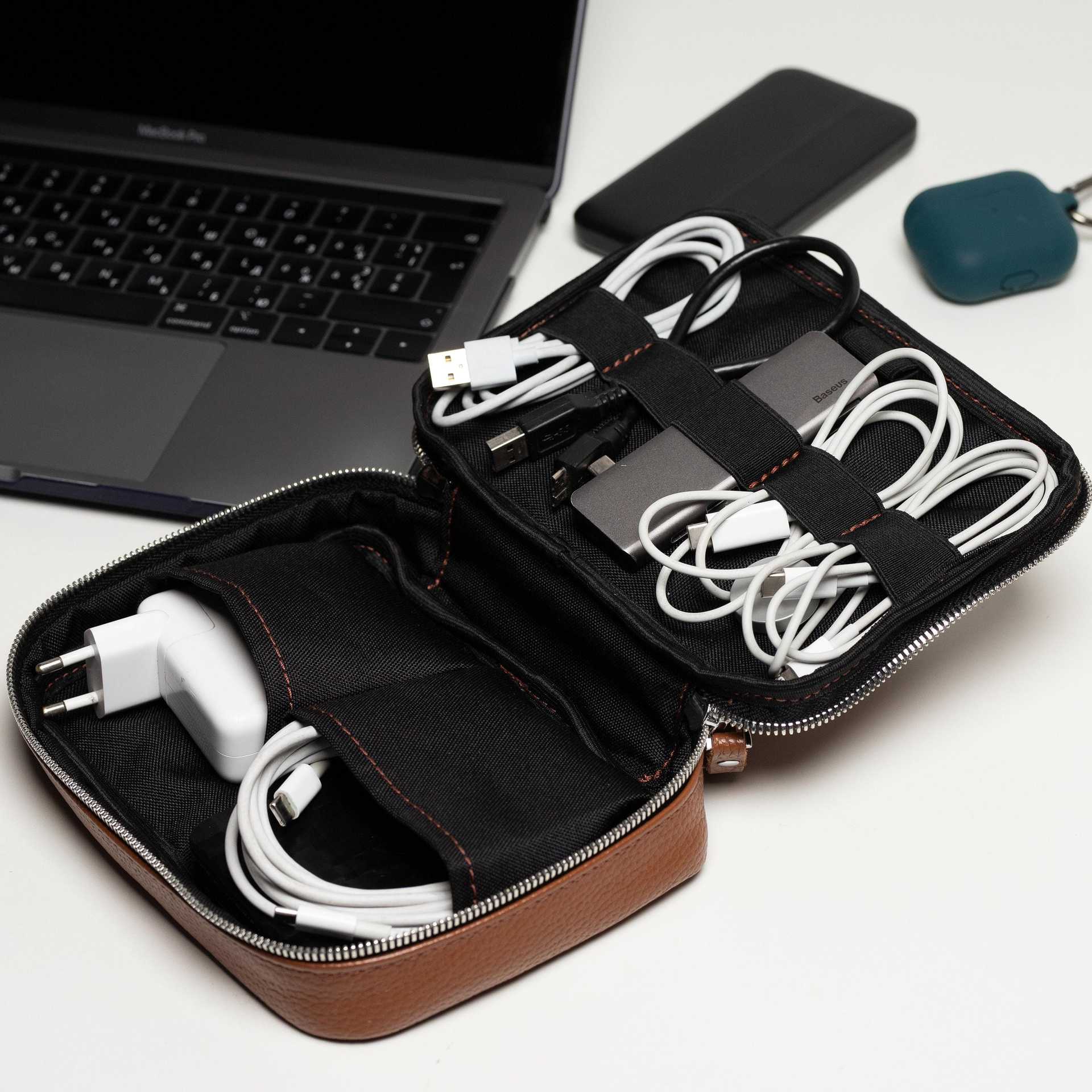 クロスボーダーペブルド柄ポータブルデジタルストレージバッグ、男性と女性のための屋外レザー多機能データケーブルオーガナイザーバッグ