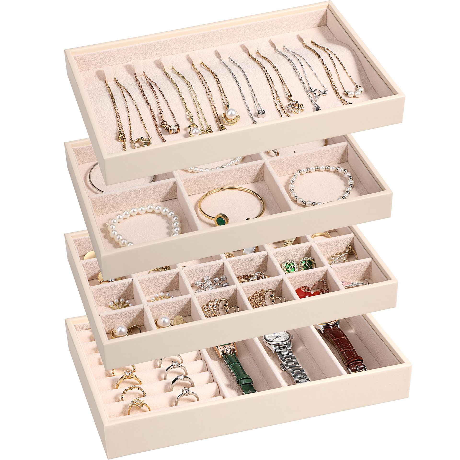 アマゾン本革マルチ格子レディースジュエリーボックス防塵ファッションレザー多層アクセサリー収納整理バッグ