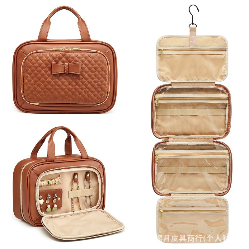 日韓トップ層牛革大容量洗面バッグ男女旅行皮革吊り下げ式洗面用品収納袋