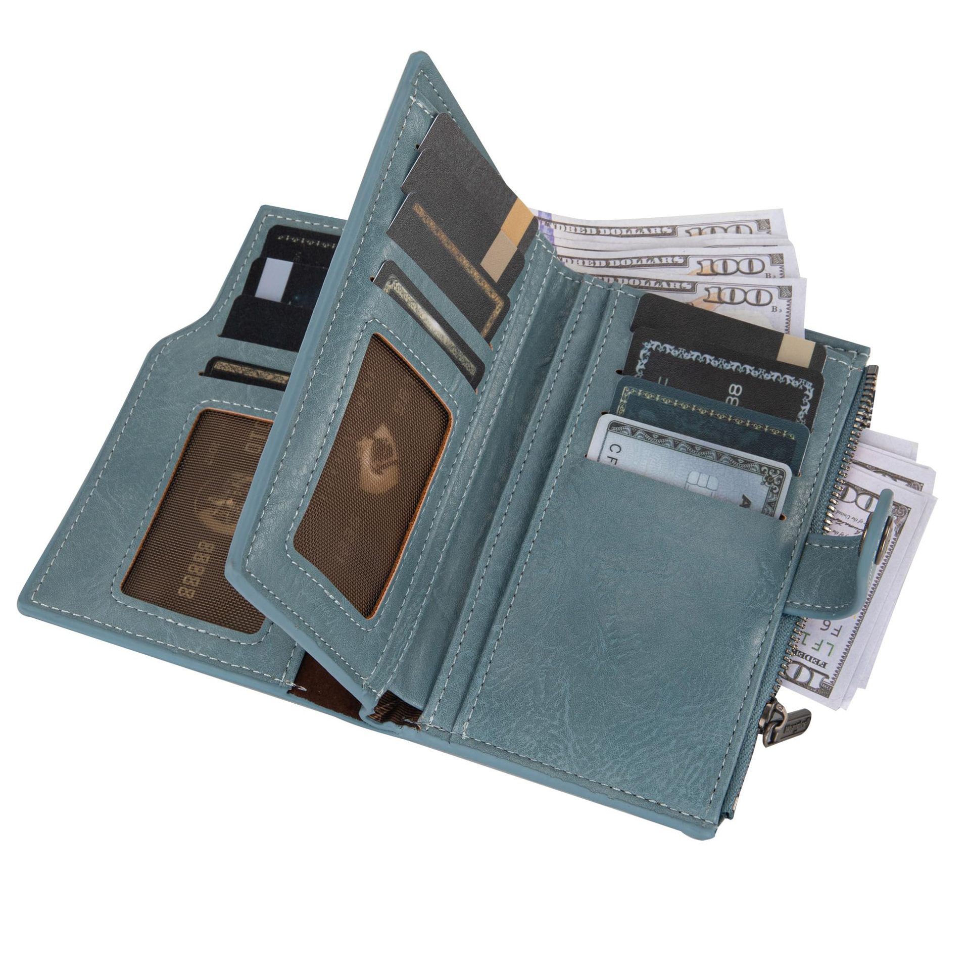 速売通油蝋皮防テープサンドイッチ短財布ファッション皮革帯大札位女性財布