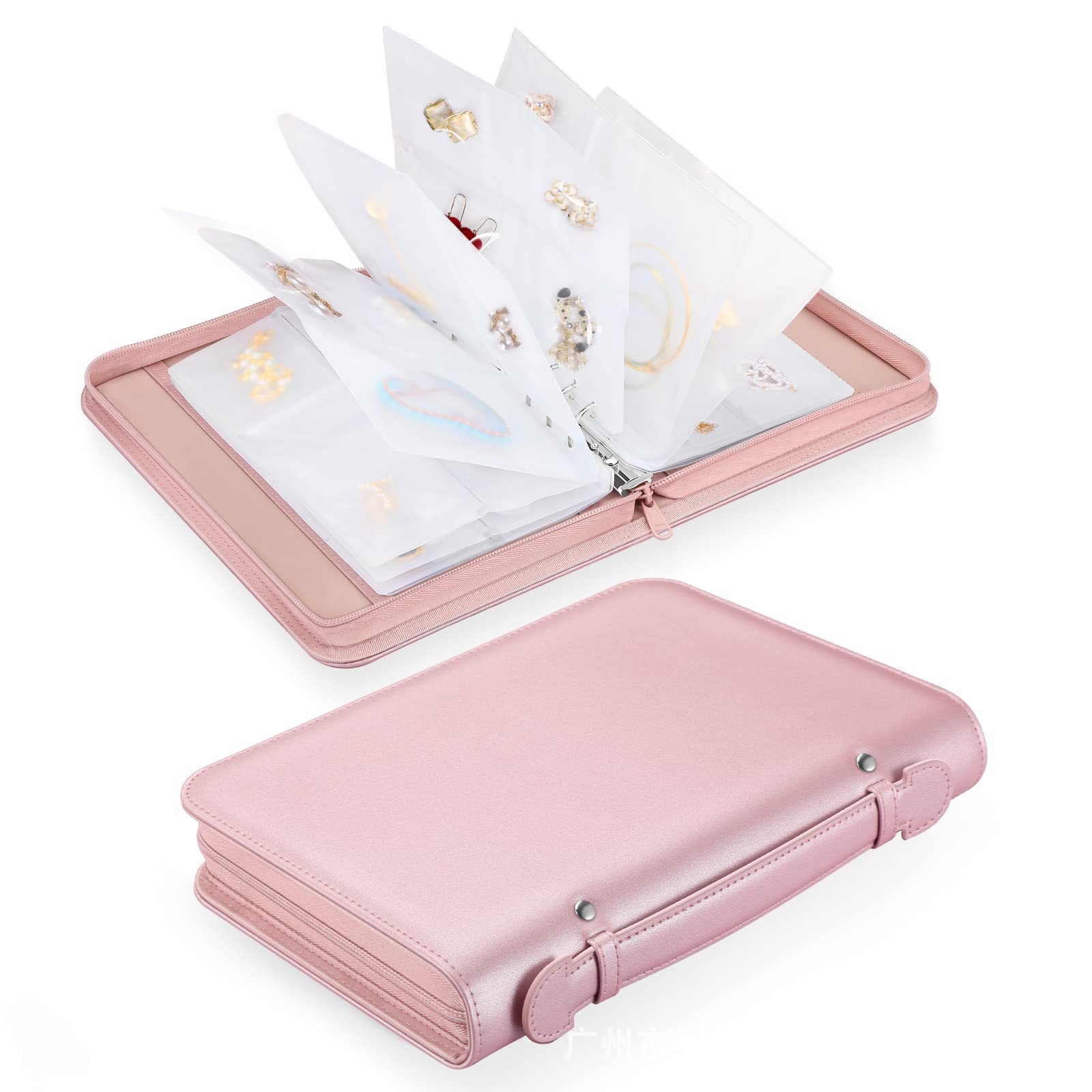2024新型本革ファスナー金アクセサリー収納ケース携帯革防塵アクセサリー収納帳アクセサリーバッグ