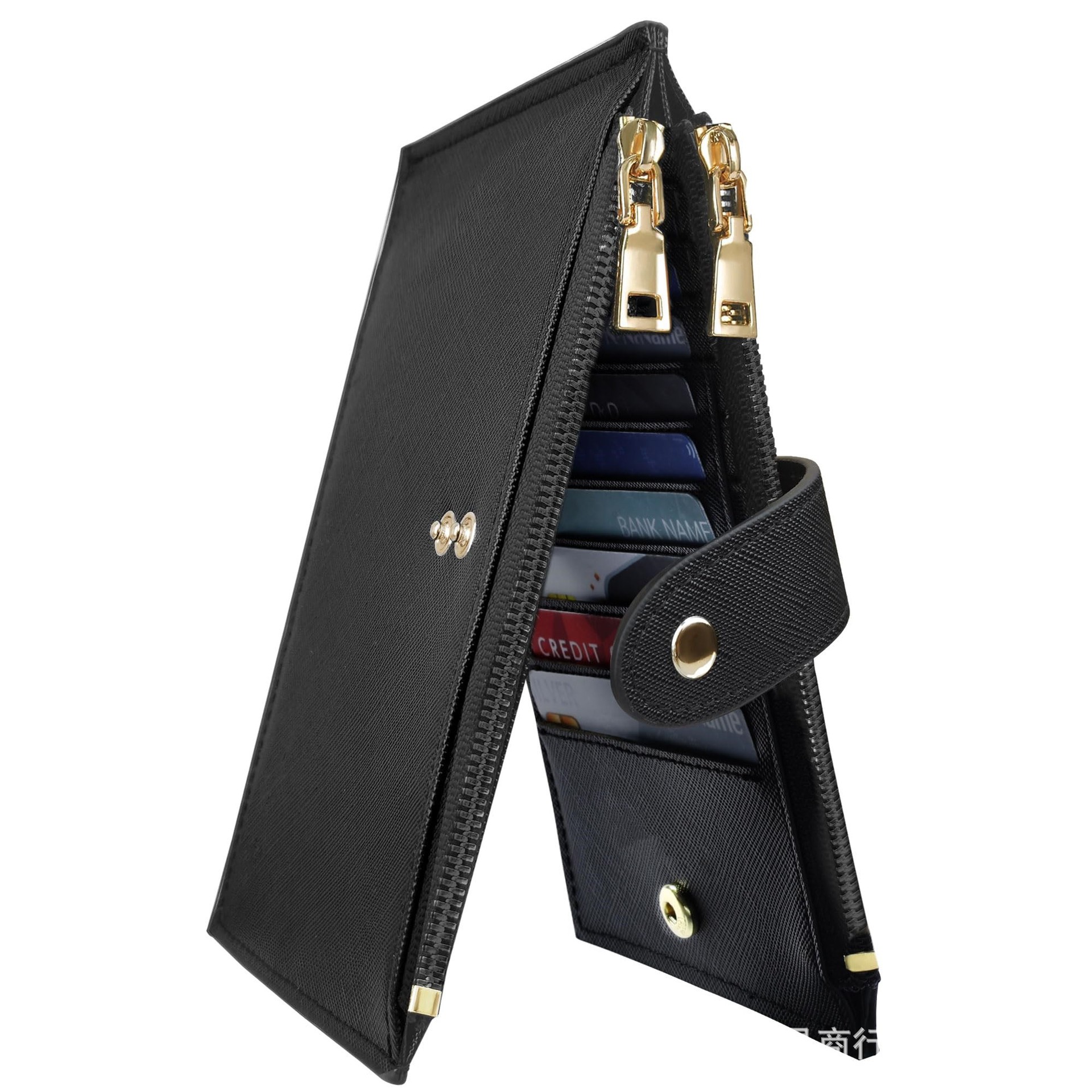 2024新品二層牛革マルチカード位レディースカードケースシンプル純色レザーカードクリップ付きジッパーカードカバー