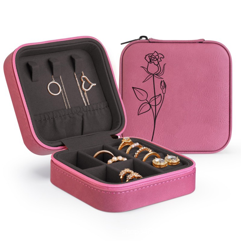 2024新型本革アクセサリーケースプリント携帯革ジュエリー収納バッグネックレス指輪アクセサリーケース女
