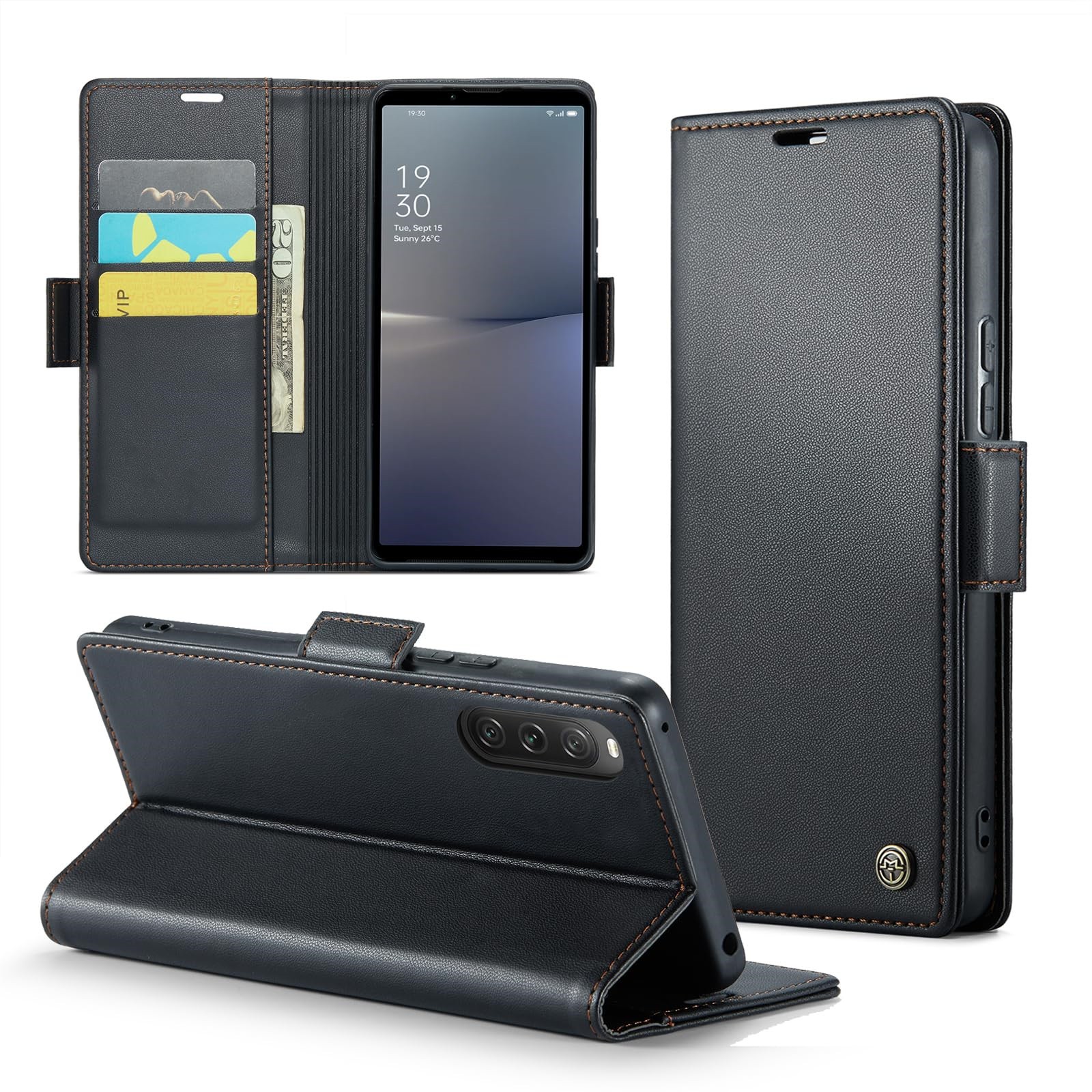 日本製クレイジーホースレザーフリップ落下防止携帯電話保護カバークラシックPU挿入可能なカードオールインクルーシブ携帯電話ケースレザーケース男性と女性用